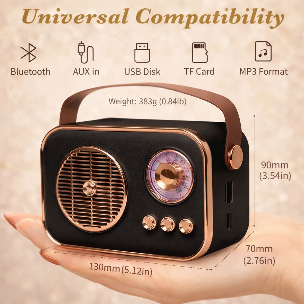 Name: Retro Vintage Bluetooth Speaker | Portable Wireless Music Player with Clear Bass & Stylish Handle | Rechargeable Mini Sound System for Home & Outdoor Use