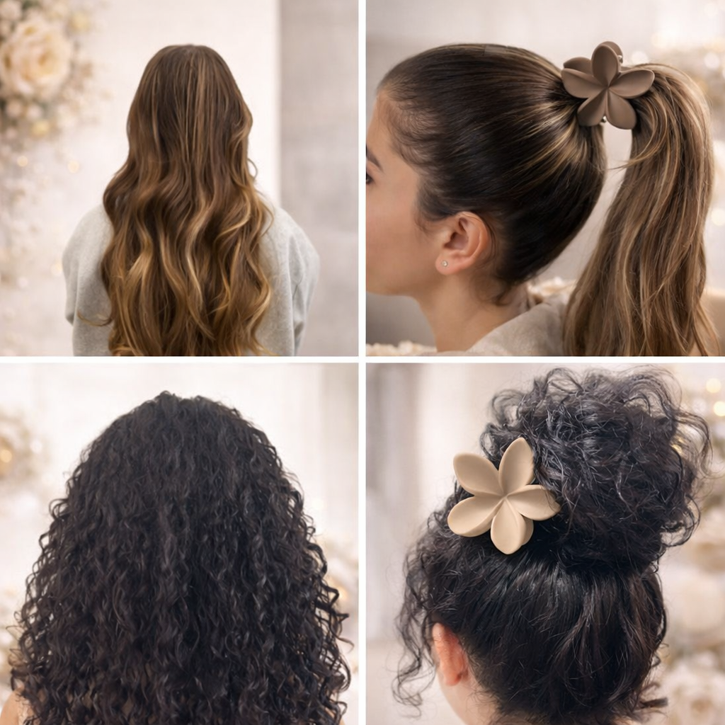 Ideal for half-up styles, mini buns, ponytails, and side clips, these clutchers work beautifully on straight, wavy, and curly hair. The pack of 6 offers versatile color options to match different outfits and occasions, making it a must-have accessory for everyday wear, office, college, travel, or casual outings.